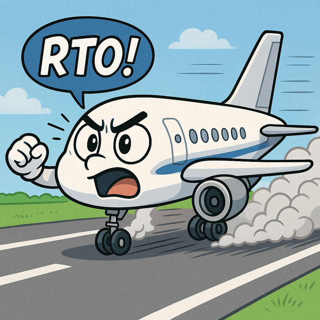 ☑️ V1 이전에만 RTO 가능 – 엔진 고장, 화재, Windshear, Takeoff Config Warning 등 중대한 상황에서만 중단